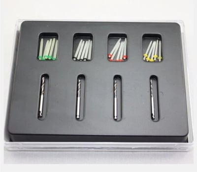 Комплектът включва 20 фиброгласни щифта с 4 различни размера и 4 съответстващи свредла.