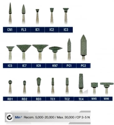 Подходящи са за изпиляване, контуриране и довършване на продукти от порцелан, композит, благородни сплави и амалгами.